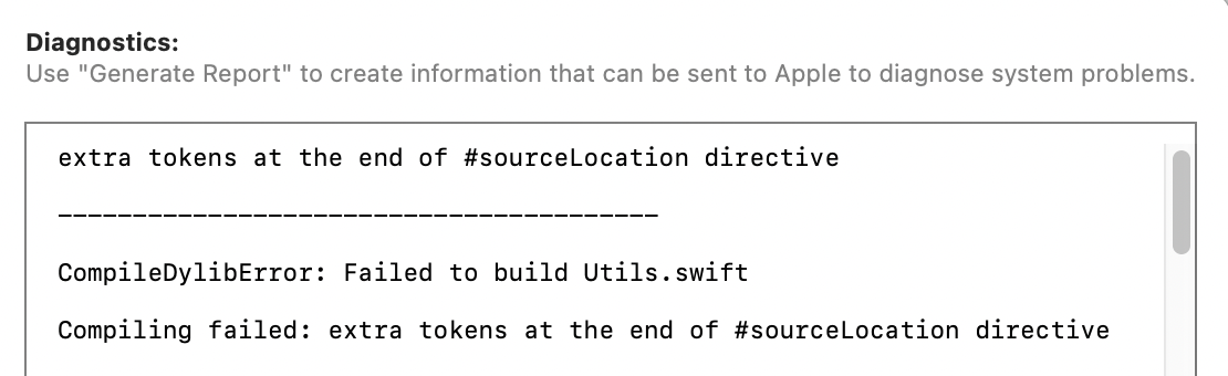 Compiling failed: extra tokens at the end of #sourceLocation directive