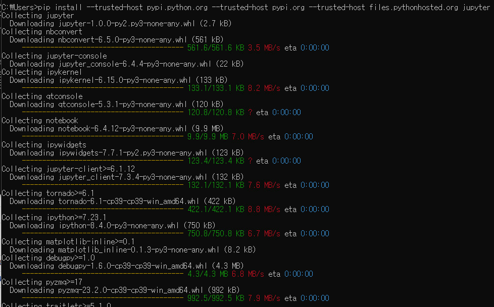 pip install --trusted-host pypi.python.org --trusted-host pypi.org --trusted-host files.pythonhosted.orgjupyter