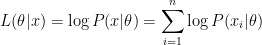 ์ ์์ likelihood function์ด๋ผ๊ณ ํ๊ณ , ๋ณดํต์ ์์ฐ๋ก๊ทธ๋ฅผ ์ด์ฉํด ์๋์ ๊ฐ์ด log-likelihood function L(๐||x)๋ฅผ ์ด์ฉํ๋ค.
