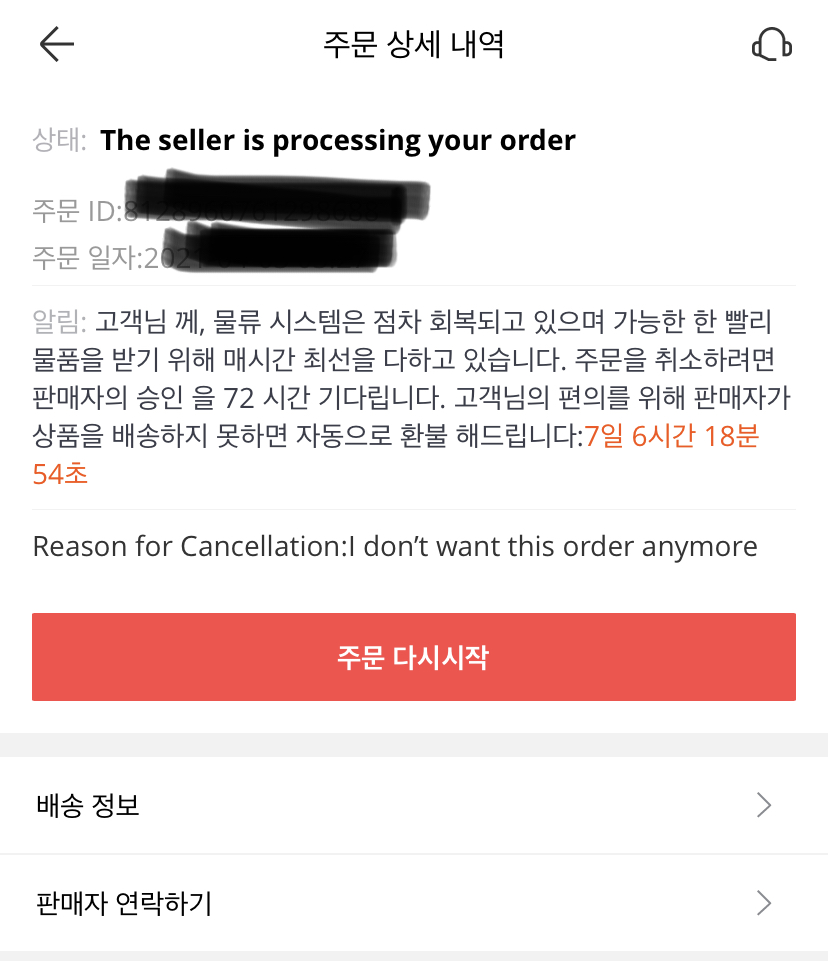 ์ฃผ๋ฌธ์ทจ์๋ฅผ ์์ฒญํ๊ณ 72์๊ฐ ๋ด์ ํ๋งค์์ชฝ์์ ์๋ฌด ๋ฐ์์ด ์์ผ๋ฉด