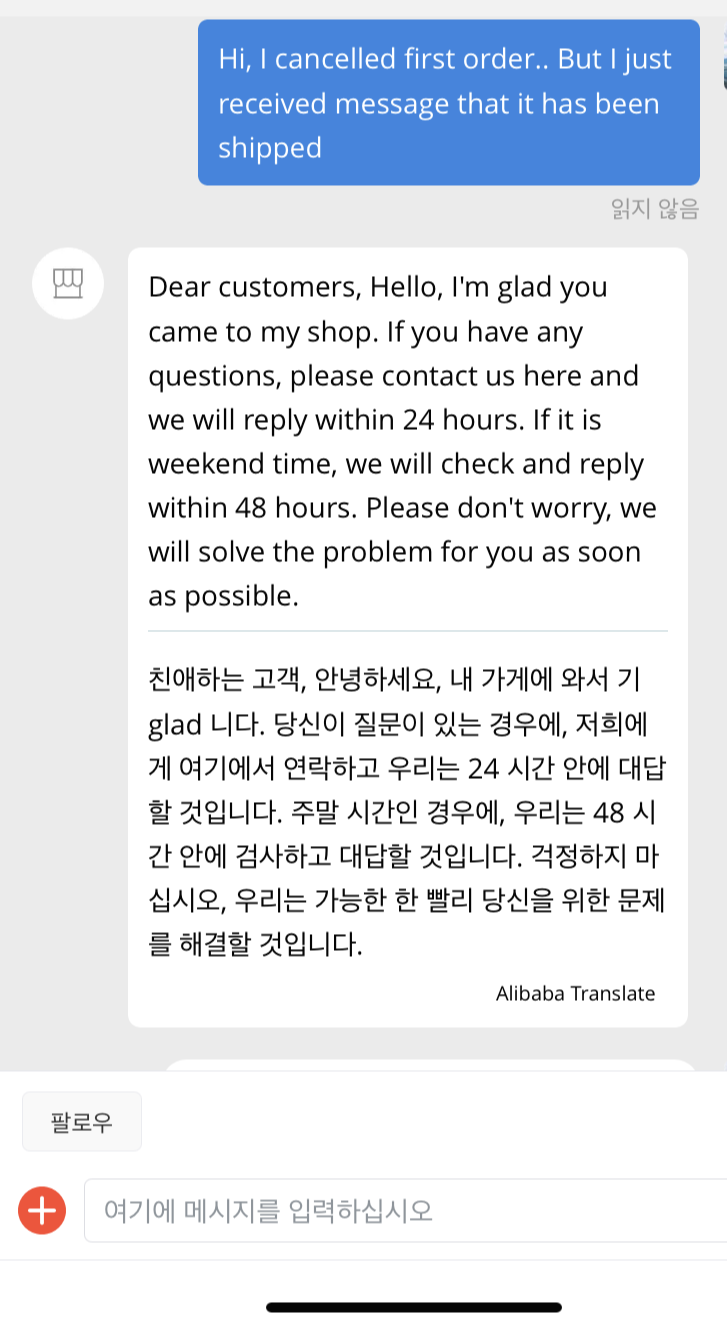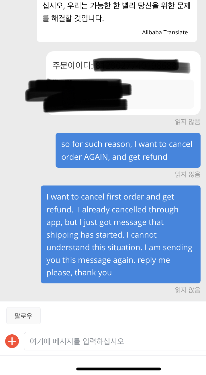 ์๋ด์ฌ์๊ฒ ์ ๊ฐ ์ฃผ๋ฌธ์ ์ทจ์ํ๋๋ฐ