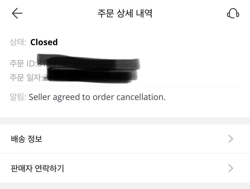 ์ํ๊ฐ closed๋๊ณ , ์๋ฆผ์ seller agreed to order cancellation ์ด๋ผ๊ณ ๋ ์