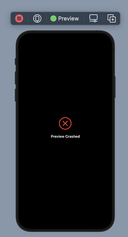 preview์ฐฝ ์๋จ์ ๋ณด๋ฉด preview crashed์ ๋ํ ์ค๋ช ์ ํด์ค๋ค.