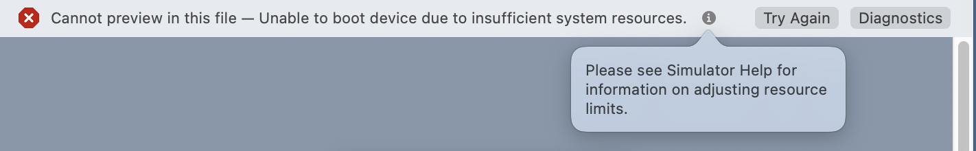 HumanReadableNSError: Unable to boot device due to insufficient system resources.